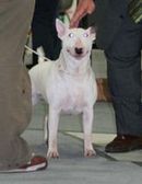 "Very pretty bitch. Very pretty head shape. Small eyes and ears. Good front and long neck.